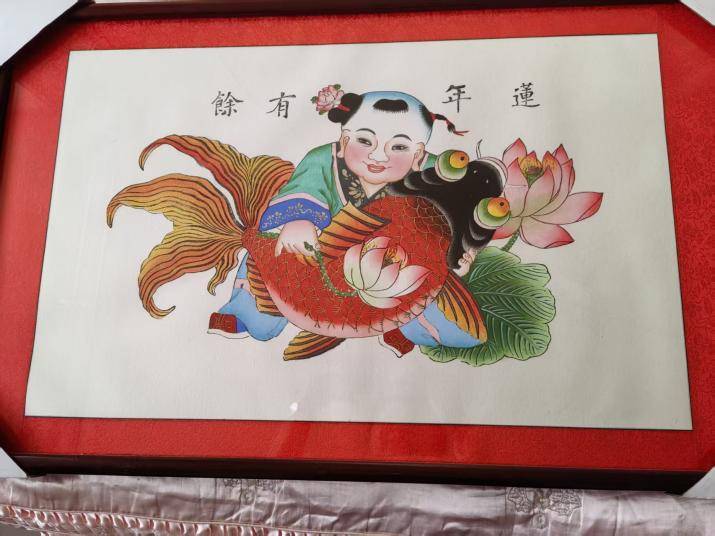 在首页留白处留言:水墨丹青一幅画,大运河畔杨柳青,百年传承颂美德,莲年有余传万家。