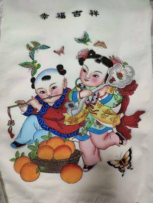 她的作品,给人自然清晰,线条颜色深浅有度,人物细节的活灵活现通过她的画笔描绘呈现给爱收藏年画的好者们,还原杨柳亲年画的亲和力与凝聚力。