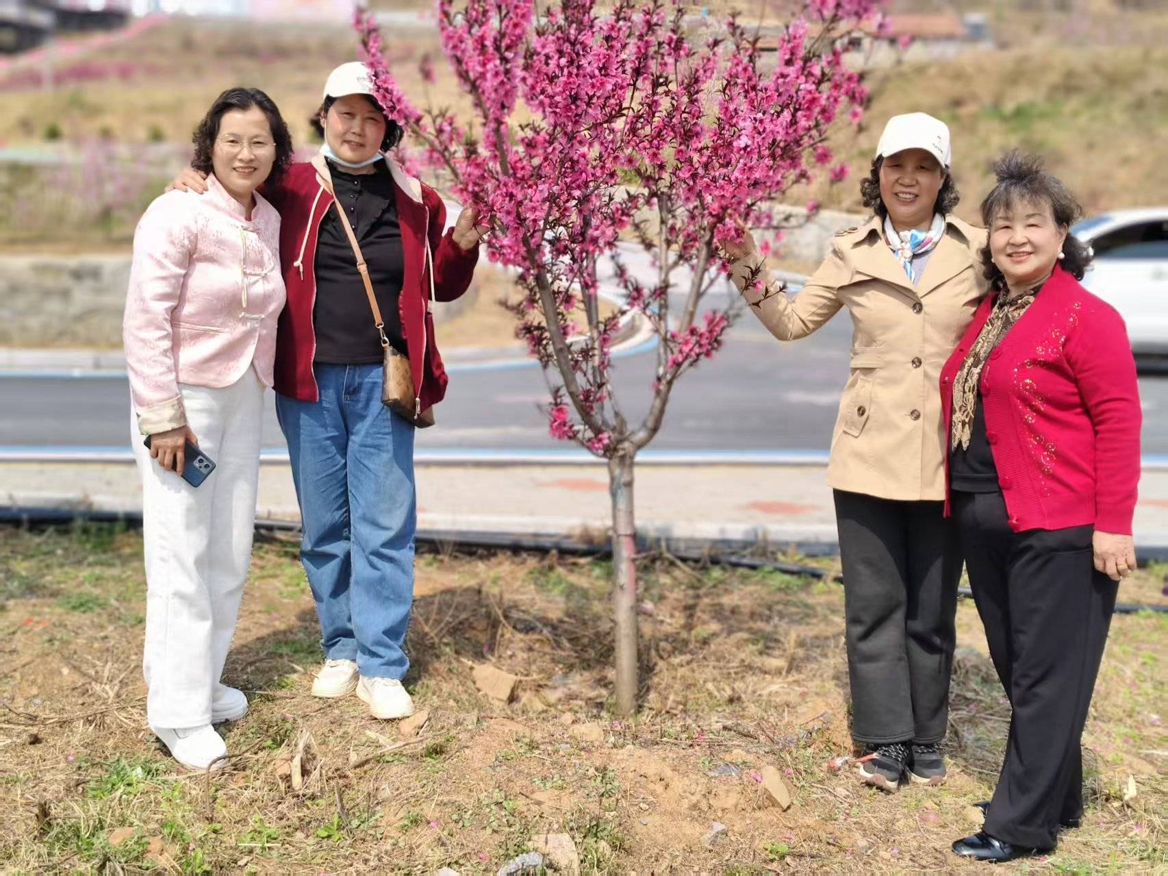 6. 车外桃花映脸红:车外漫山遍野粉嘟嘟的桃花正在盛开,把车内文友们的脸颊都映照得通红。