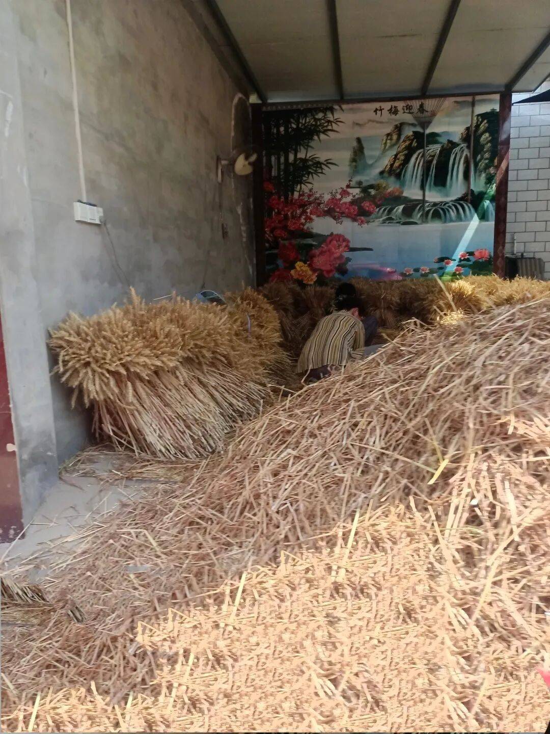 在这个季节,还会有一种鹧鸪鸟辛勤地鸣叫:“ 钩辀格磔,钩辀格磔 ”类似于“广呱呱嘟,黄瓜拌醋,广呱呱嘟”的声音。只能听到叫声在很密的树林里,我却从来没有看到这种鸟,但它们每年都会如约而至,所以觉得很神秘,它们有点像麦天里的播报员。随着时代发展,麦地里已经全部机械化了,联合收割机很快就收完了,一袋子一袋子粮食直接可以拉回家去,省去了之前的很多程序。一分耕耘,一分收获,朴实的农民看到麦子收回了家,露出了满意的笑容。