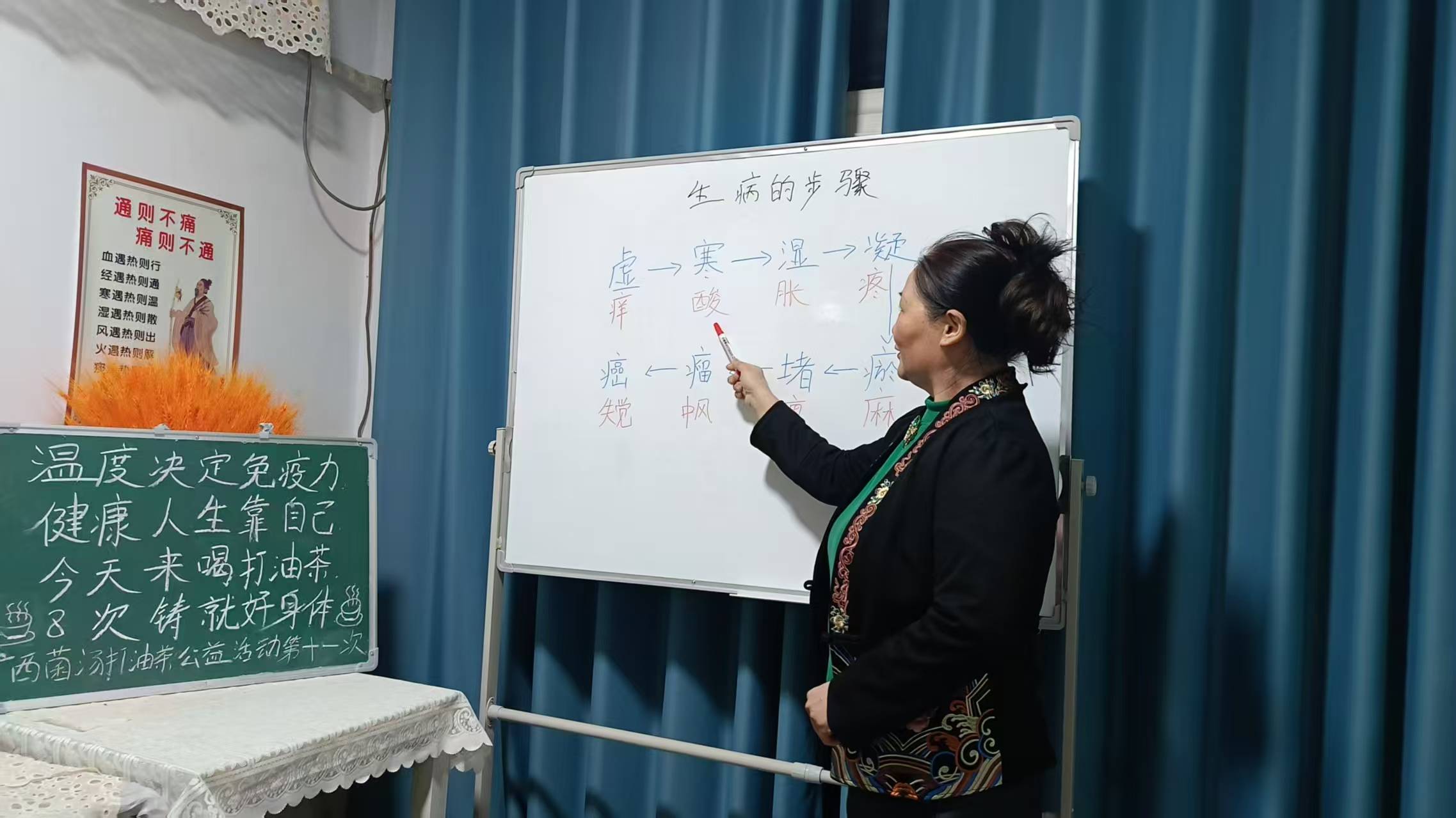 在经营养生馆的过程中,田书霞深刻认识到,道德的力量不仅在于个体践行,更在于带动他人、传递善意。她始终秉持“独善其身不如兼济天下”的道德追求,积极响应“健康中国”战略号召,将公益事业作为传播健康理念与道德精神的重要阵地,创新性地推出公益“养生茶话会”。她亲手制作正宗广西菌汤打油茶,遵循“三砸、三炒、三煮”的传统工序,精选十几种天然食材,不添加任何香精色素;搭配的五色蔬菜,更是基于中医“五色入五脏”理论与现代营养学精心设计,红色护心、绿色明目、黄色健脾、白色润肺、黑色益肾,每一份食材都承载着她的用心与善意。