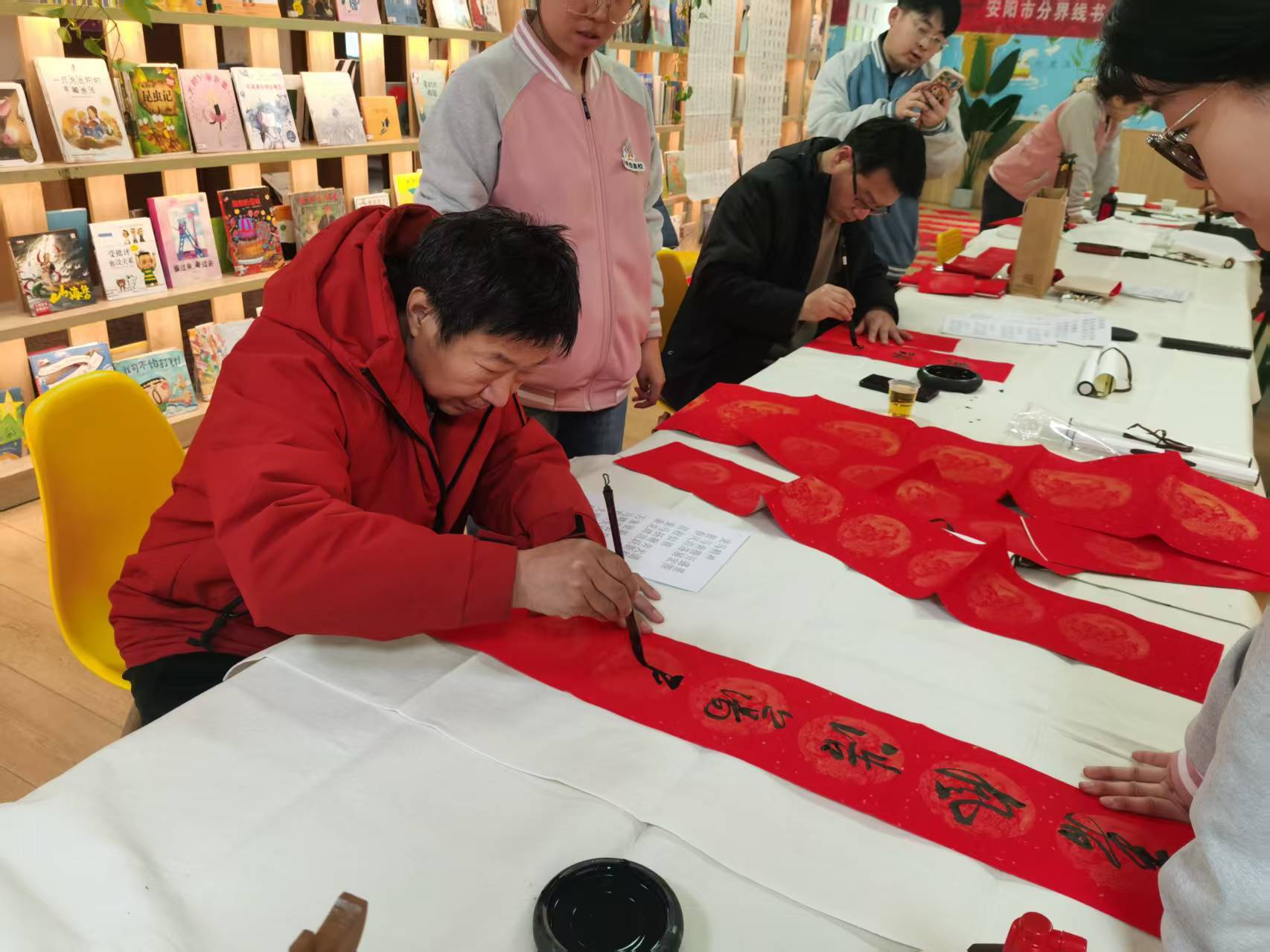 活动现场,墨香四溢、春意融融,书画爱好者们凝神挥毫、各展所长,真草隶篆、花鸟山水各具韵味,大家将新春祝福凝于笔端,共书写春联300余幅、书画作品50余幅。书画爱好者们凝神静气,挥毫泼墨,各展所长。真草隶篆,或端庄大气,或飘逸灵动;花鸟山水,或栩栩如生,或意境悠远。每一幅作品都饱含着对新春的期盼、对盛世的赞颂,为该校师生和广大群众送上了一份浓郁的文化年味,使他们在笔墨间感受中华优秀传统文化的独特魅力。不一会儿,一幅幅散发着墨香的春联、一个个饱满喜庆的“福”字就铺满了地面,红彤彤的一片,让整个现场都洋溢着浓浓的年味。