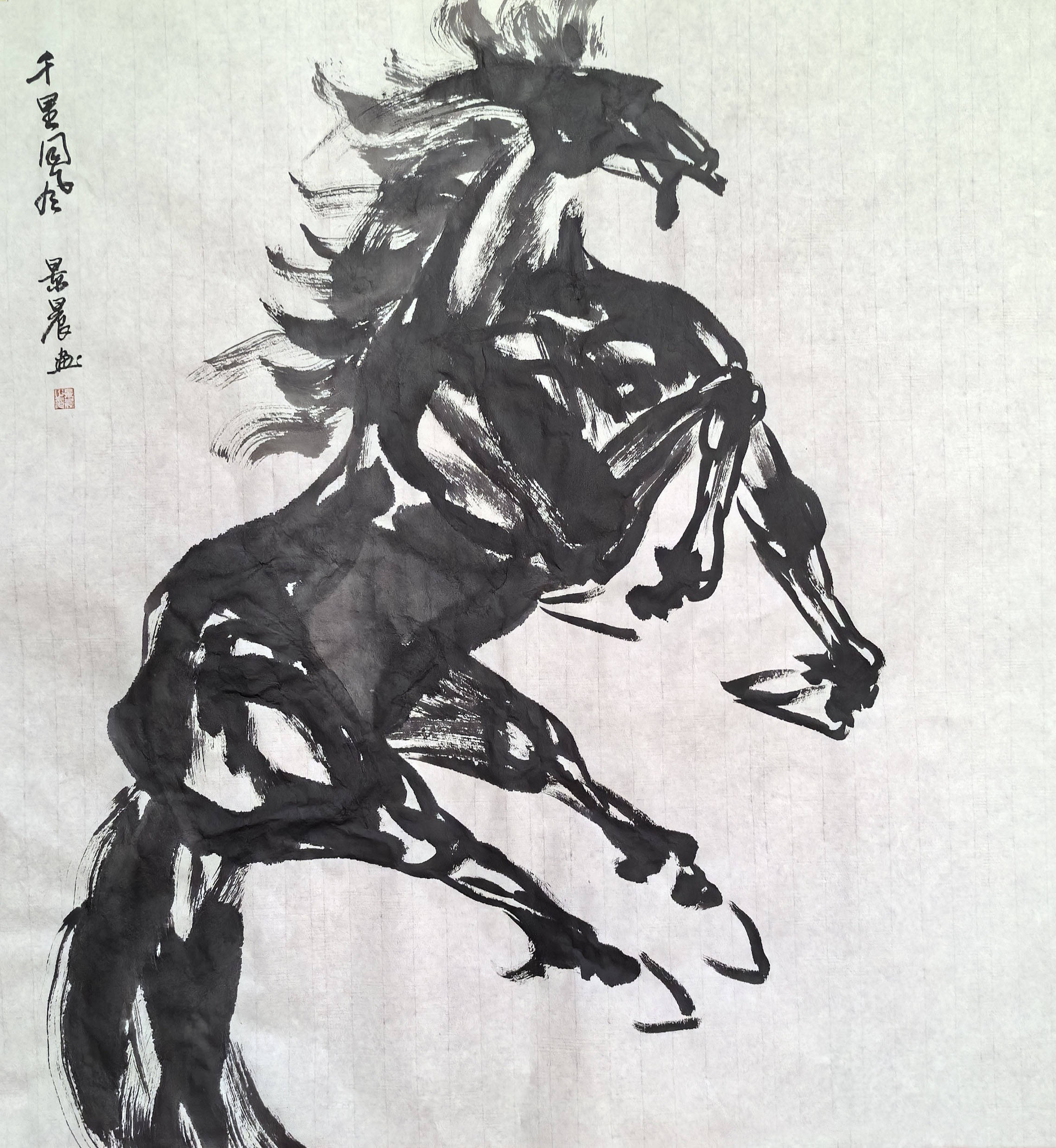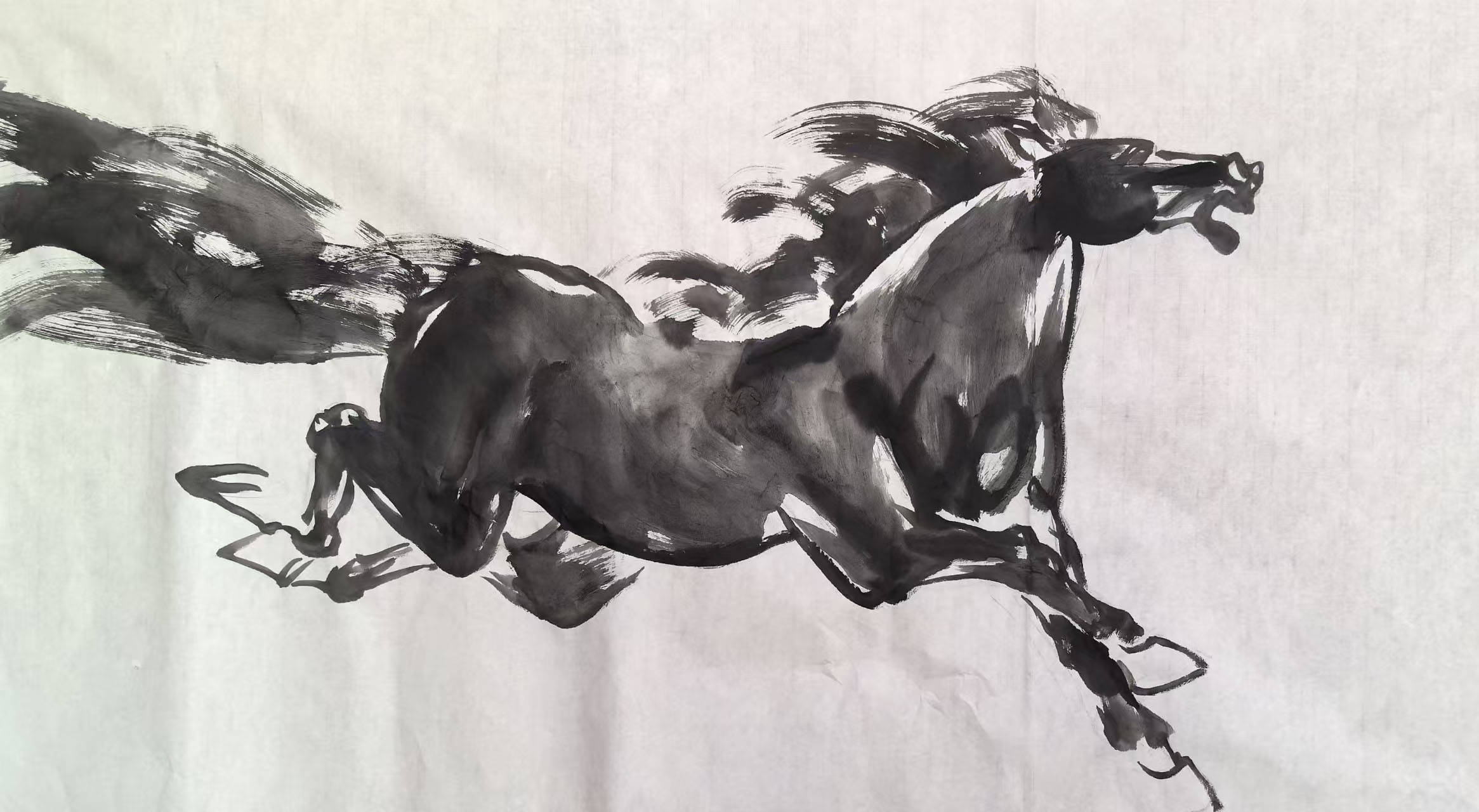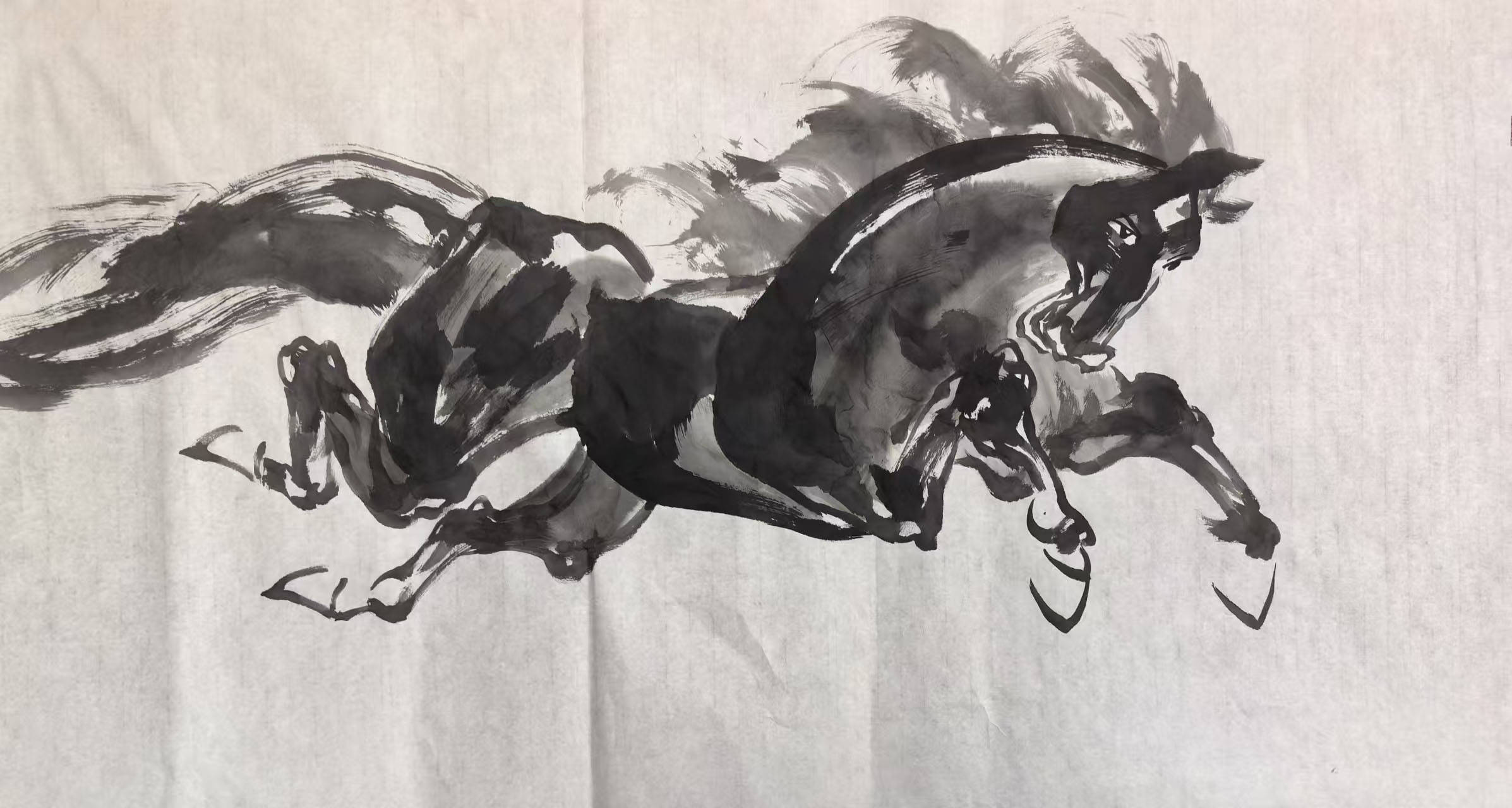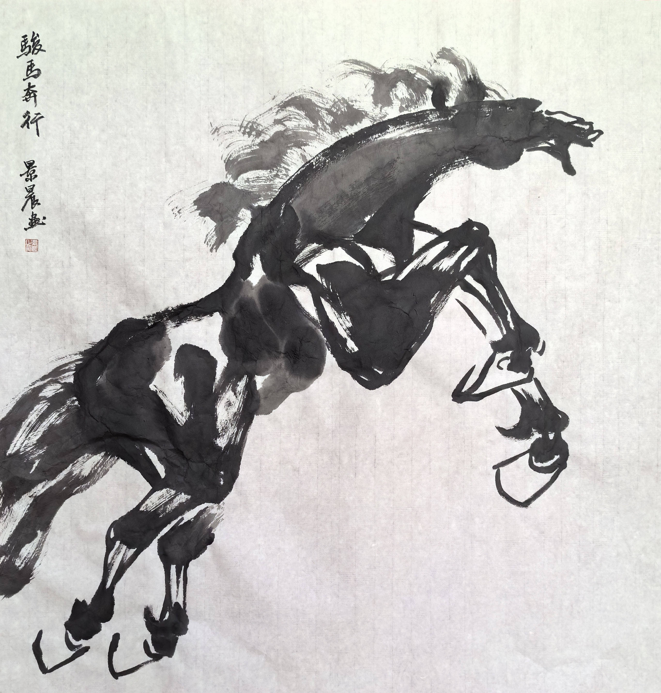 马,在中国文化中承载着祥瑞、奋进、自由的美好寓意,从古老图腾到文人笔墨,马的形象始终是艺术家钟爱的创作题材,更是文明续航力的诗意尺度。恰逢丙午马年,深耕书画领域数十年的吴景晨先生,将自身的笔墨功力与马的精神内核相融,挥毫创作了一系列以马为主题的佳作,为马年增添了浓郁的艺术气息。不同于传统画马的程式化表达,也区别于当代艺术中过于抽象的演绎,吴景晨的马画,兼具传统笔墨的韵味与自身的艺术思考——他以中国画的写意笔法为基础,融入书法的线条力量,笔下的骏马或昂首嘶鸣、气势轩昂,或奋蹄疾驰、身姿矫健,或缓步前行、神态悠然,鬃毛飞扬间尽显灵动,笔墨流转中暗藏风骨。