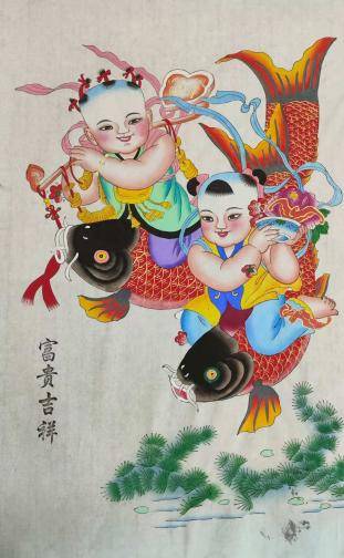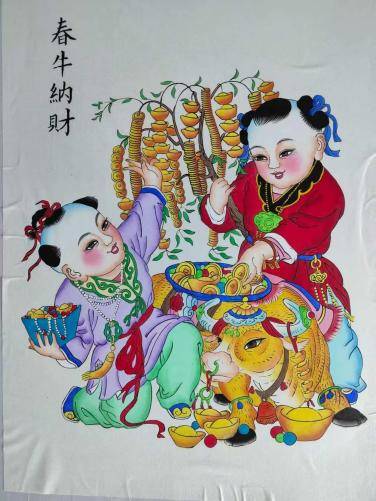 一年之计在于春,春牛纳财,春天耕牛遍地走,象征着播撒勤奋的种子,将收获满满的财富。中国人常把鱼作为富裕的寓意,这种画送人有面子有礼仪。杨柳青年画的娃娃与大鲤鱼的版画多姿多彩,已为经典之名画,深受人们的欢迎。