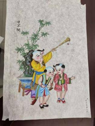 她的作品,给人自然清晰,线条颜色深浅有度,人物细节的活灵活现,通过她的画笔描绘呈现给收藏年画的爱好者们,还原杨柳青年画的亲和力与凝聚力。